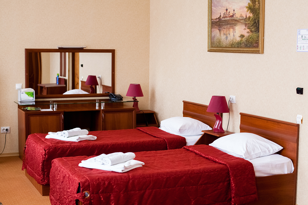 Предусмотрено 1 дополнительное место. Стоимость 1 дополнительного места: 500 руб. (номер с двуспальными кроватями) или (номер с односпальными кроватями)