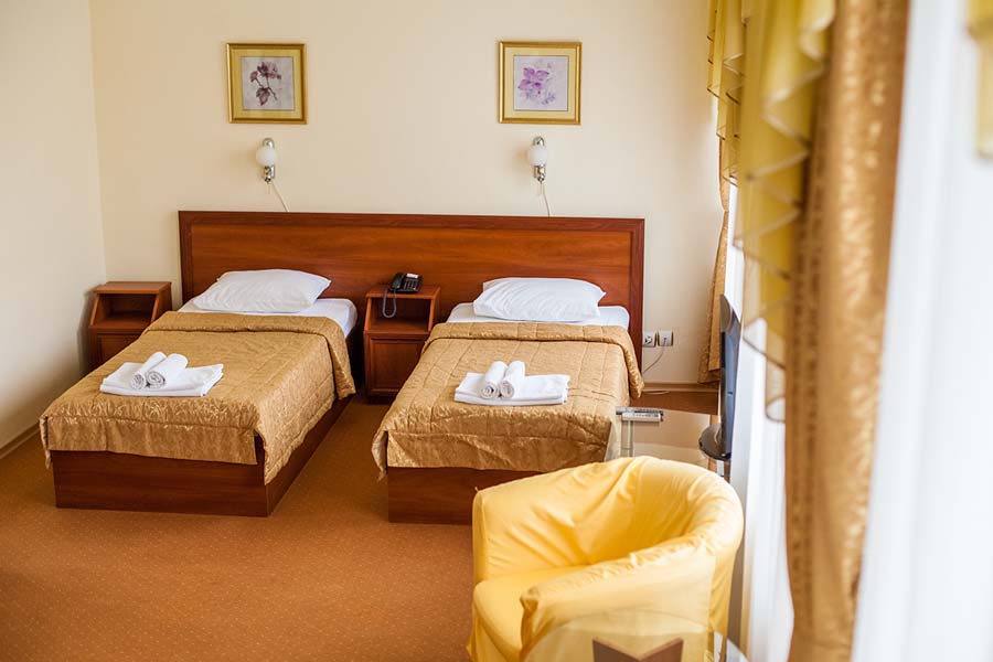 Теплая атмосфера в номерах - поможет отлично отдохнуть от утомительной поездки или насыщенного делового дня. В номере есть все необходимое для комфортного проживания. Площадь номеров около 27 м2.
